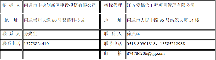 一、項(xiàng)目名稱:南通市中央創(chuàng)新區(qū)建設(shè)投資有限公司第三方質(zhì)量安全技術(shù)服務(wù)